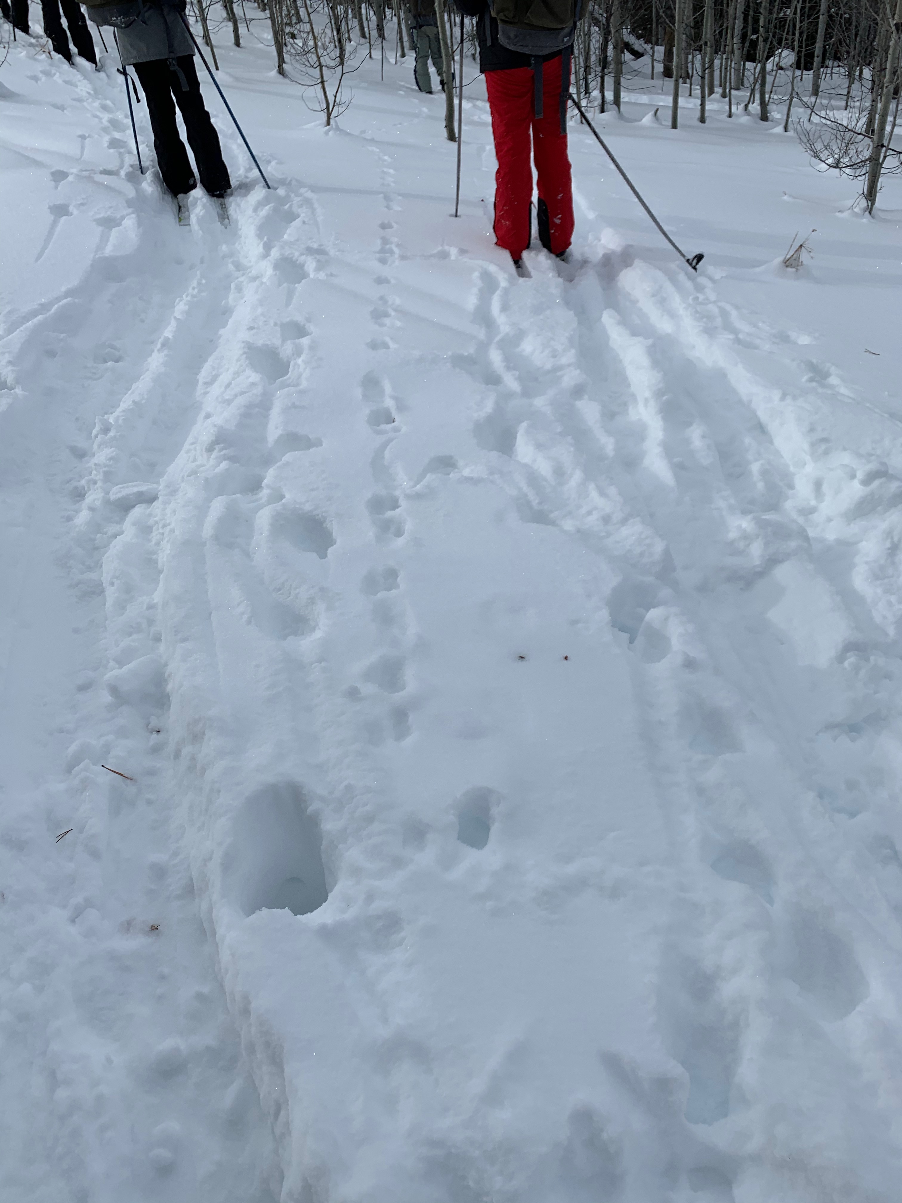 Today we launched into formal research on the TSS campus. After exploring interests and considering scientific questions, students formed groups and determined a research question and methods for collecting data. Research topics include animal tracking, tree species frequency, snow temperature and density, and sagebrush dominance. Most of the groups spent a significant amount of time determining their scientific process which, while on skis or snowshoes, can feel tricky. We were fortunate to have beautiful weather again today, not too cold or windy to keep students from digging snow pits or measuring sinuosity. Everybody is eager to finish their data collection tomorrow morning. Students have been digging into their journals during morning art sessions and afternoon “resource time.” This evening, a TSS instructor is guiding a session on mindful communication. This week has stretched us to be more observant and inquisitive. Looking forward to our final field day and research presentations tomorrow.