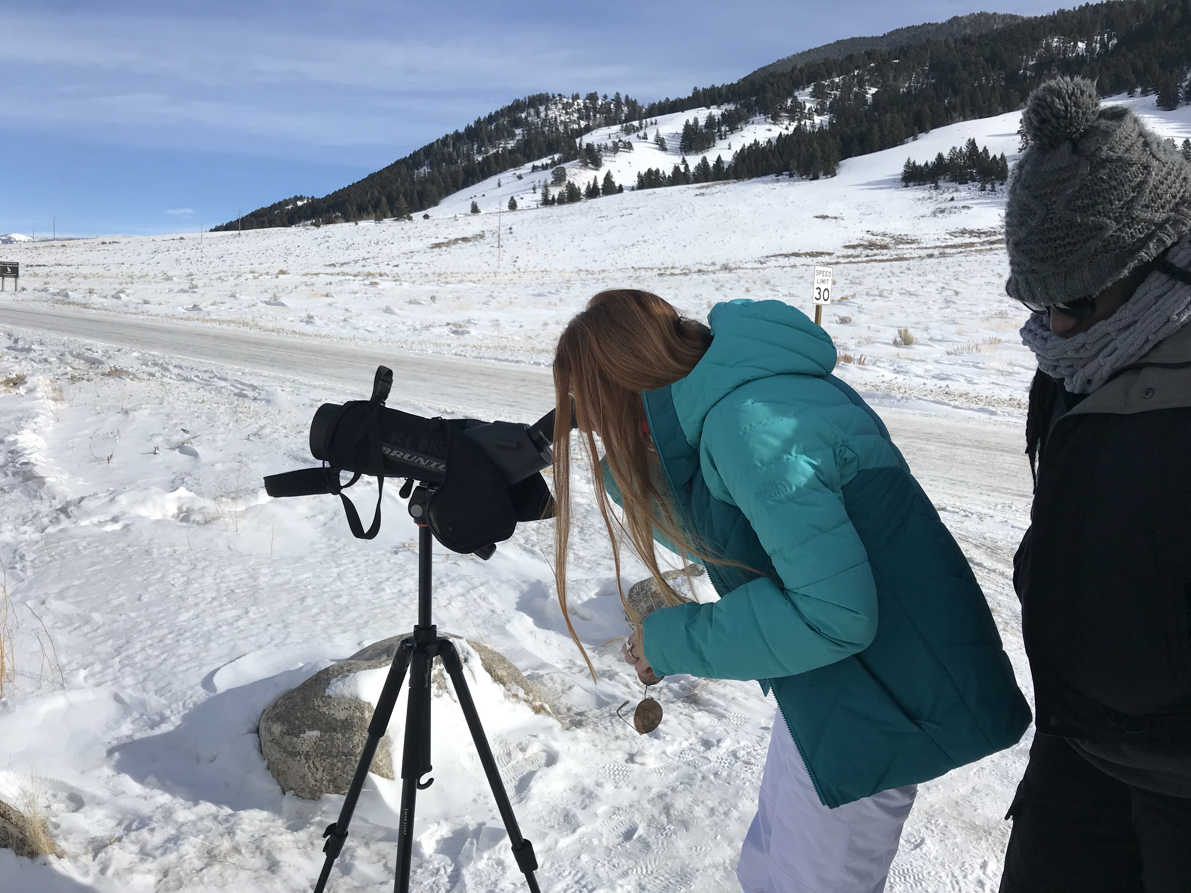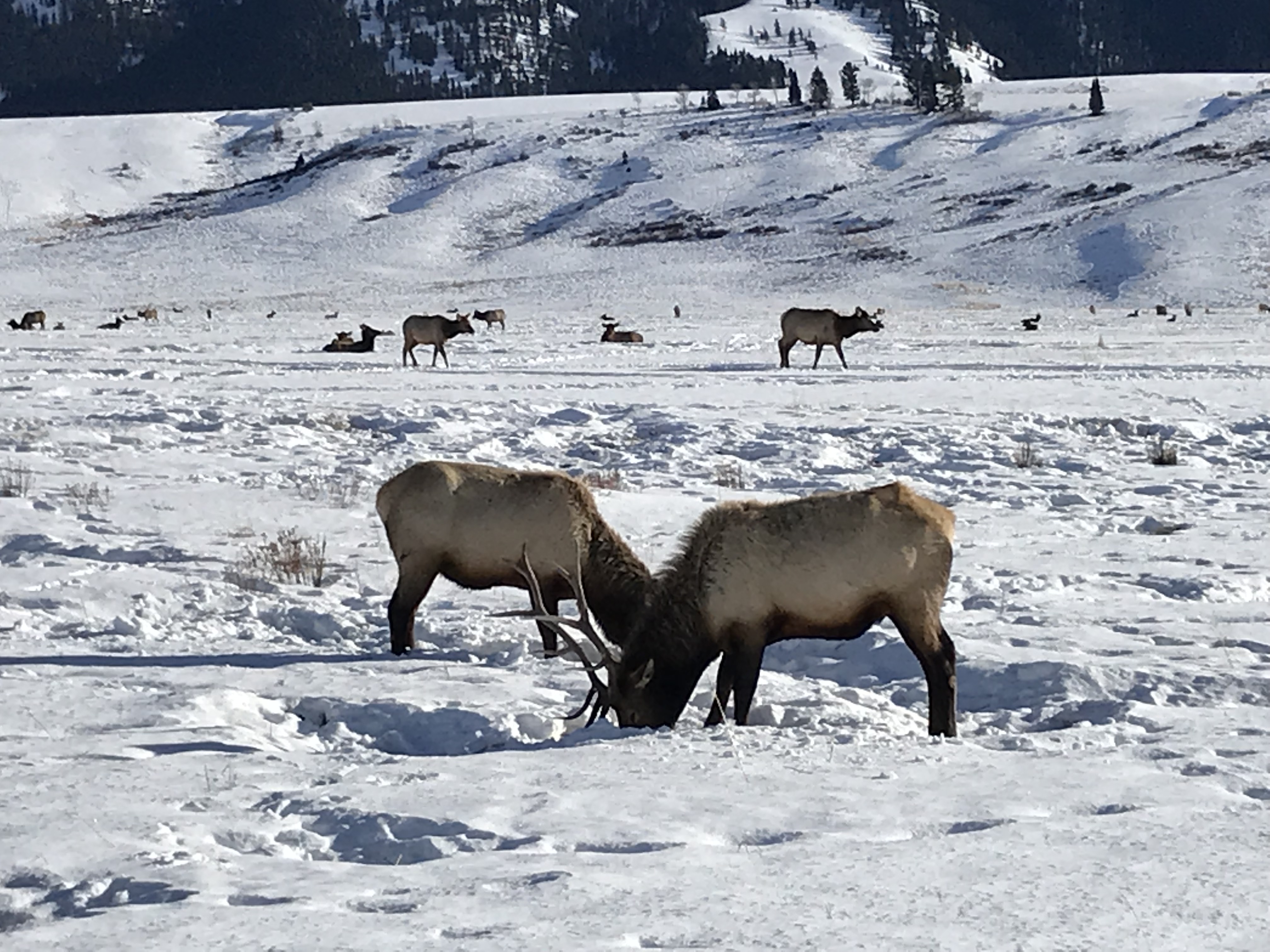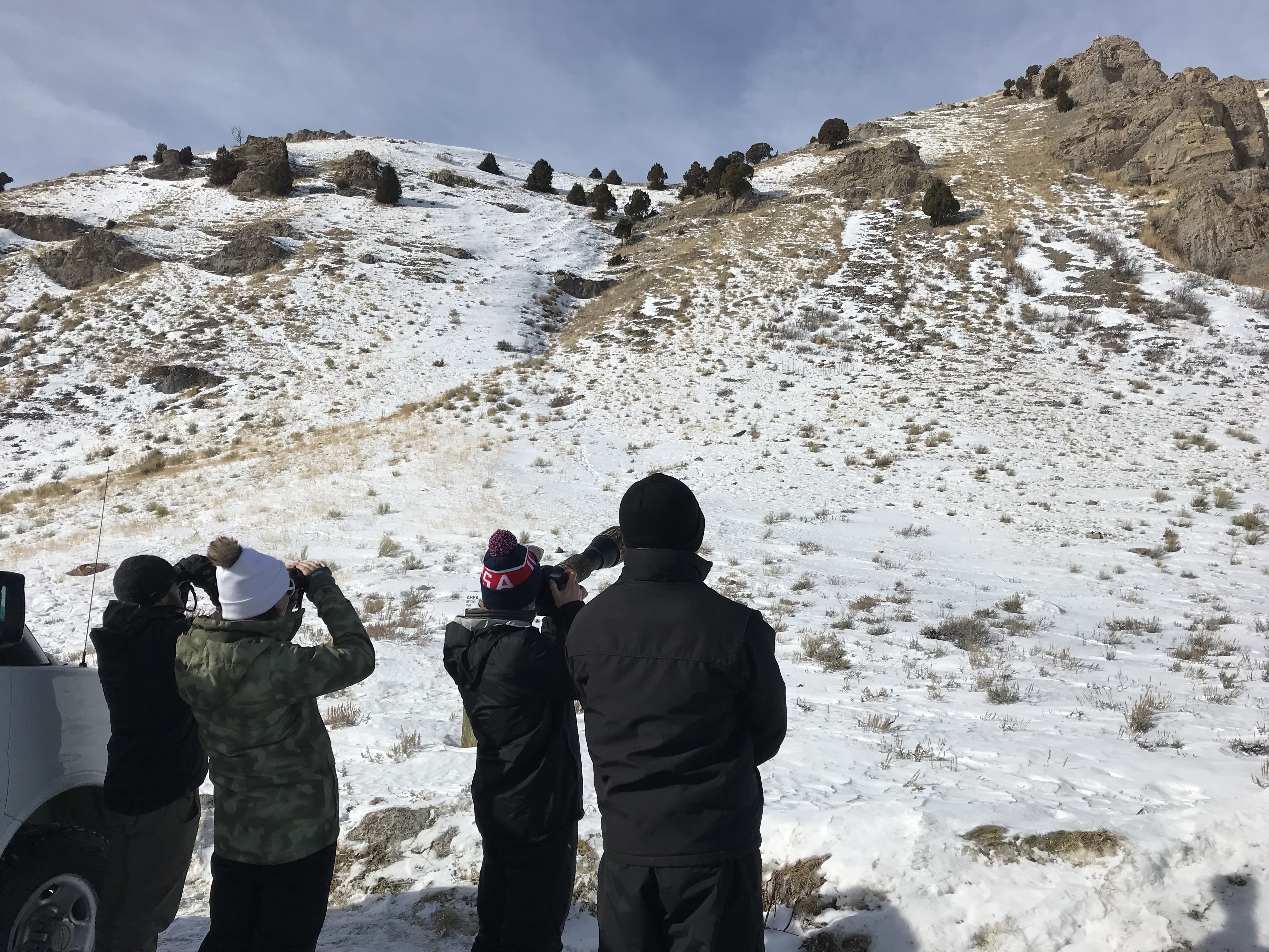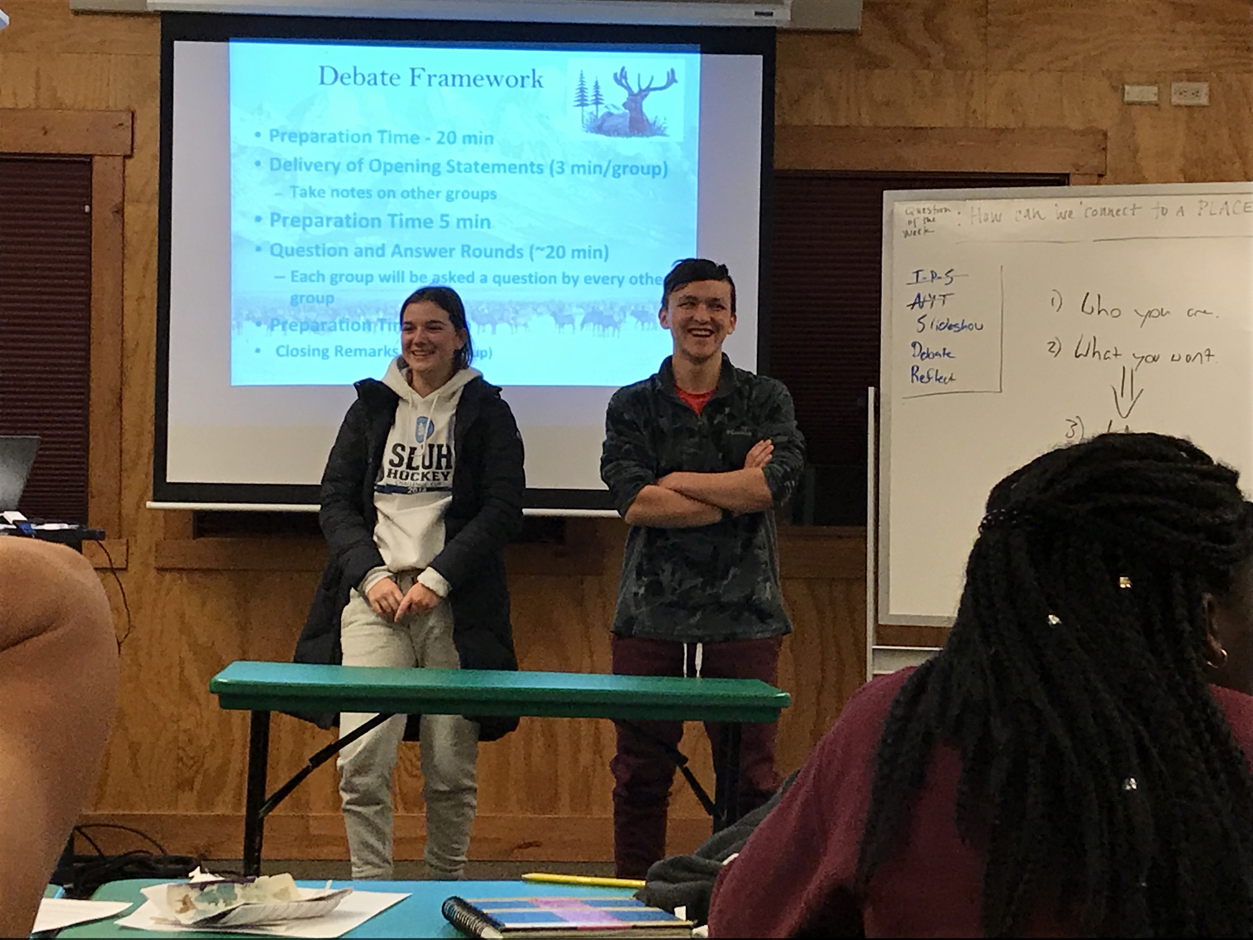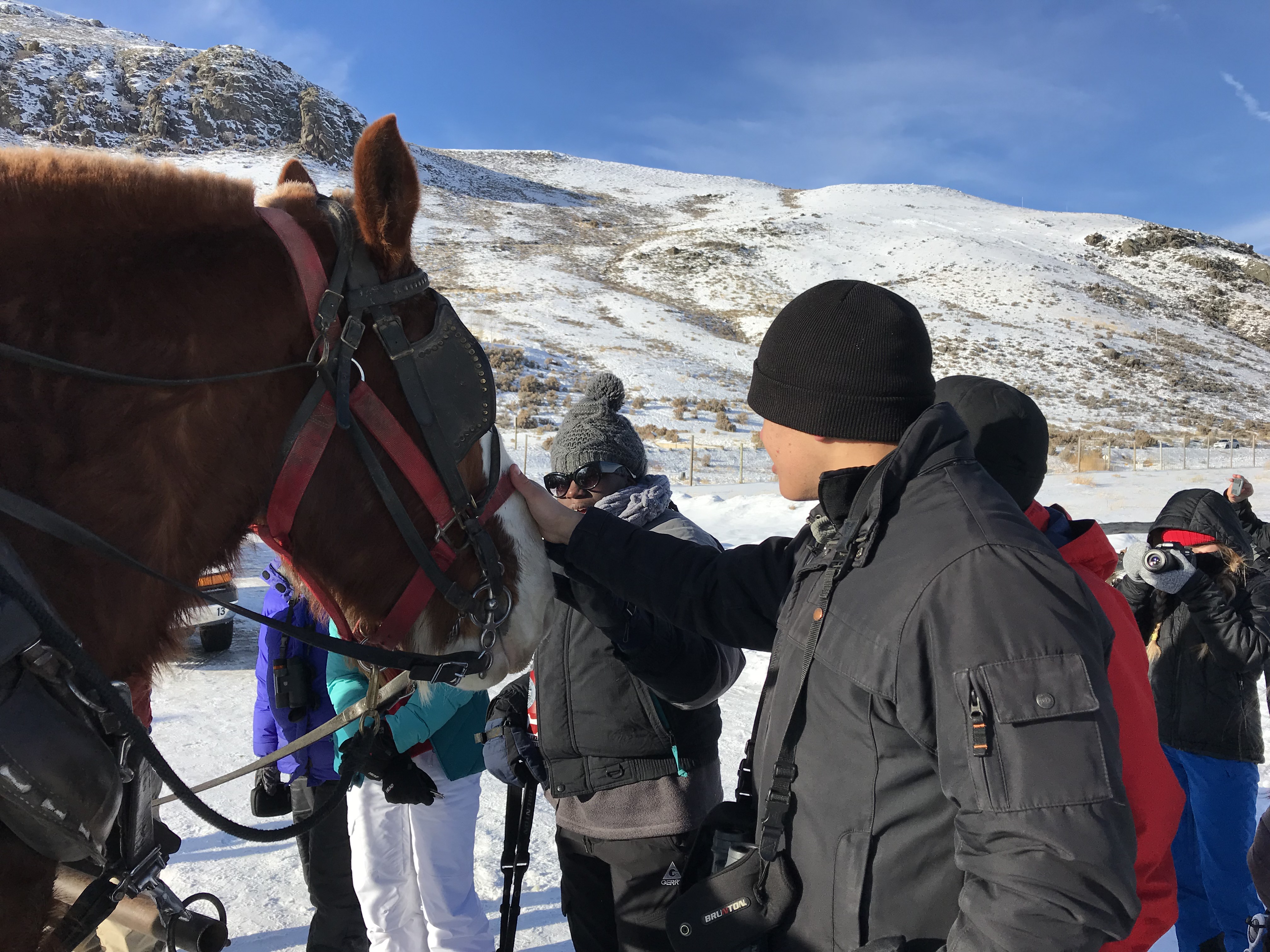This morning we were greeted by the magnificent Teton range out in all its glory. Sunny day provided clear views and a gorgeous sunrise and sunset. In the morning, we went to the National Wildlife Art Museum and explored the question, “How does art inspired by wilderness contribute to conservation?” It was powerful to see how students identified ethics expressed in works of art. After the museum, we drove to Miller Butte in hopes of seeing big horn sheep. We were not disappointed! Following the exciting finds, we took a sleigh ride at the National Elk Refuge, learning in depth about the controversial topic of feeding the elk. We wrapped up the evening with a fiery (yet very respectful) debate that highlighted each of the stakeholders who are part of this controversial management practice. We sought consensus and some groups found it. Be sure to ask what their thoughts are on feeding the elk and why!