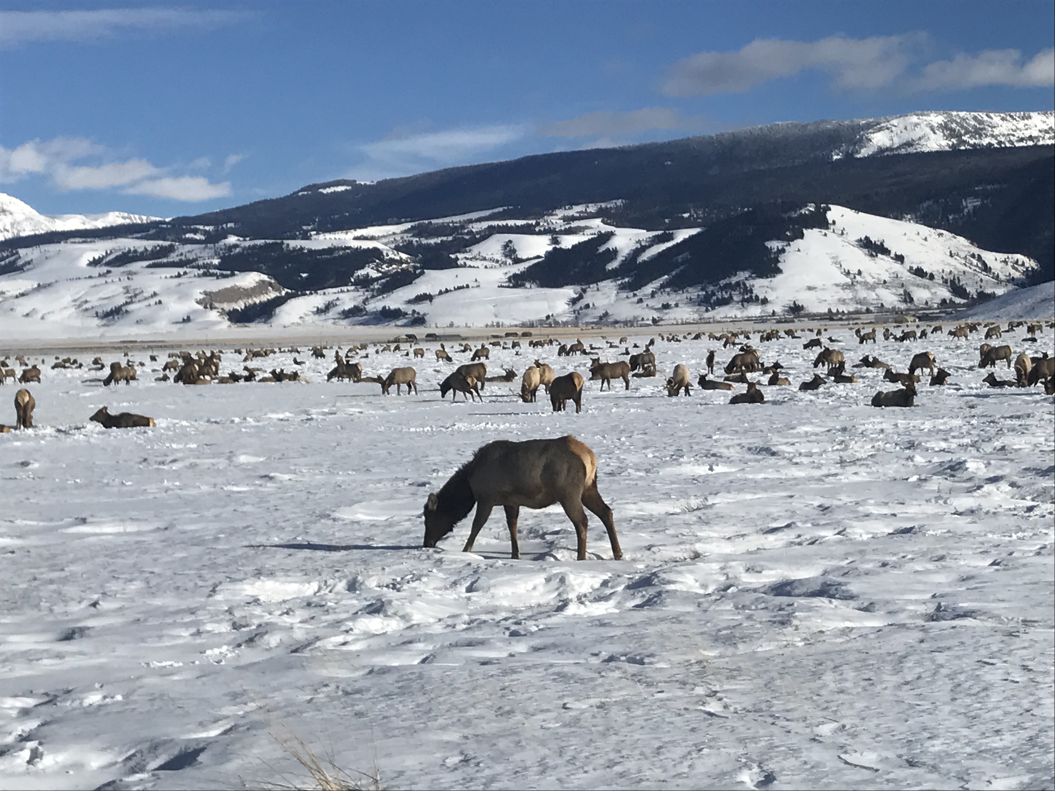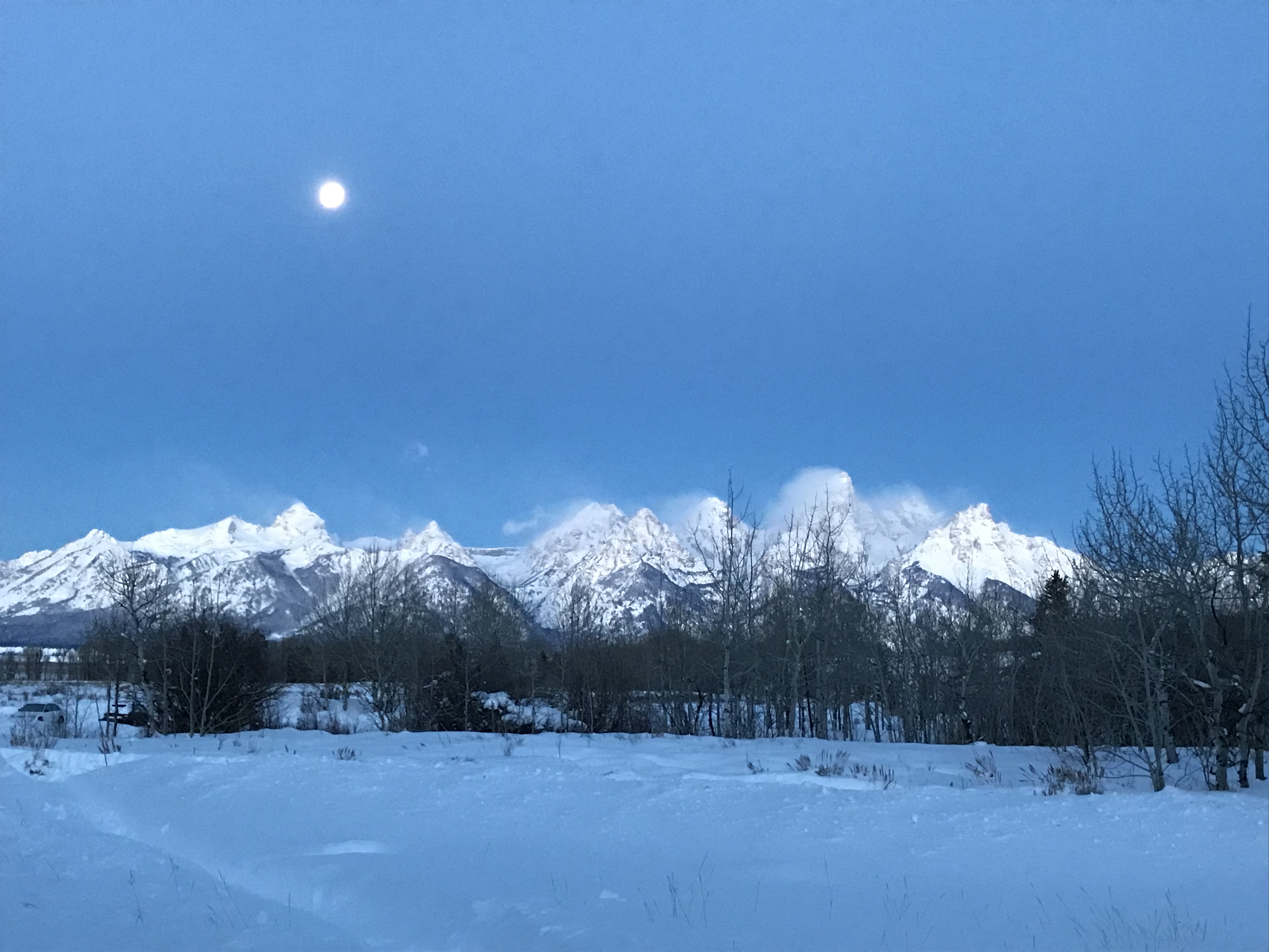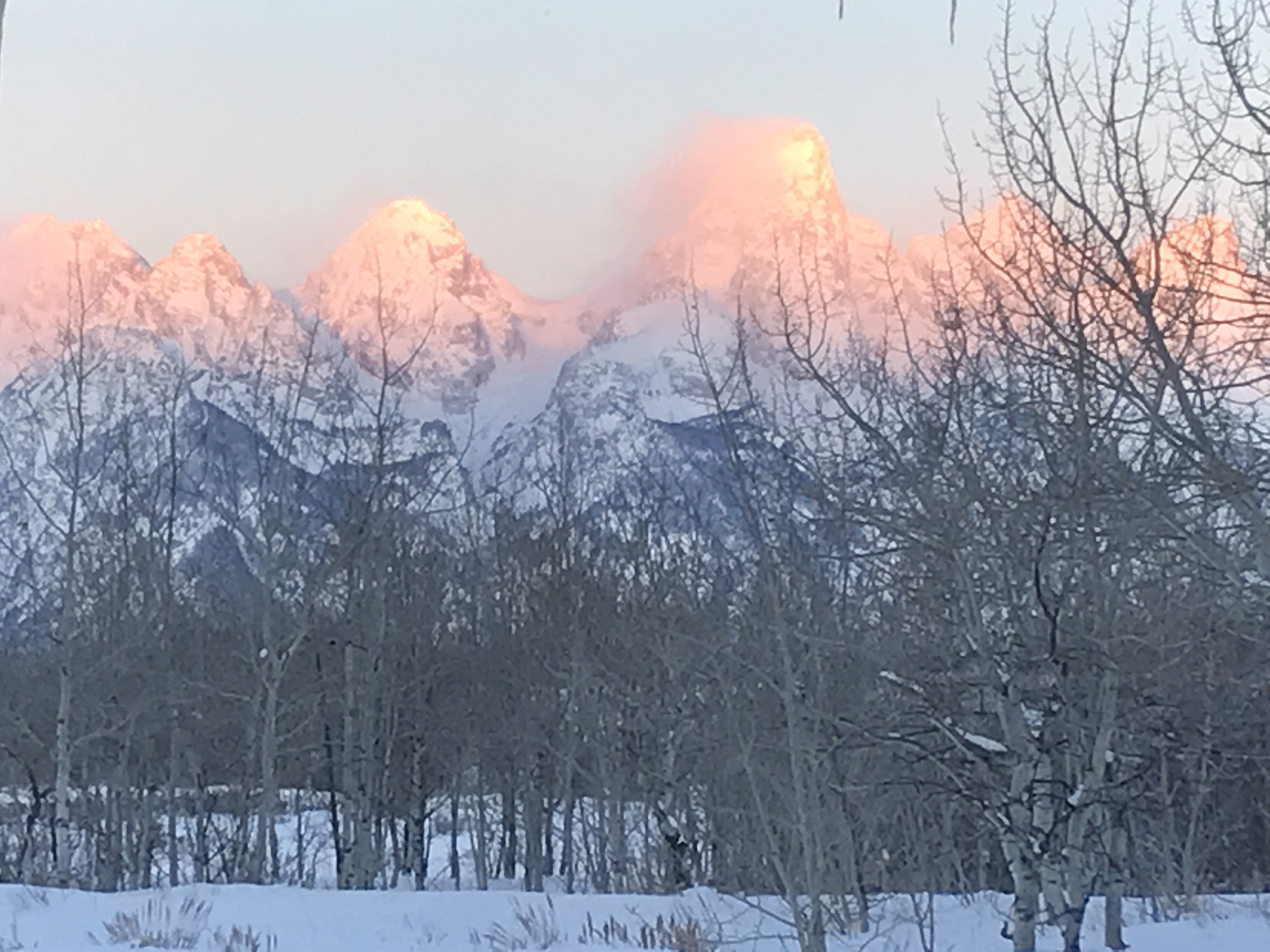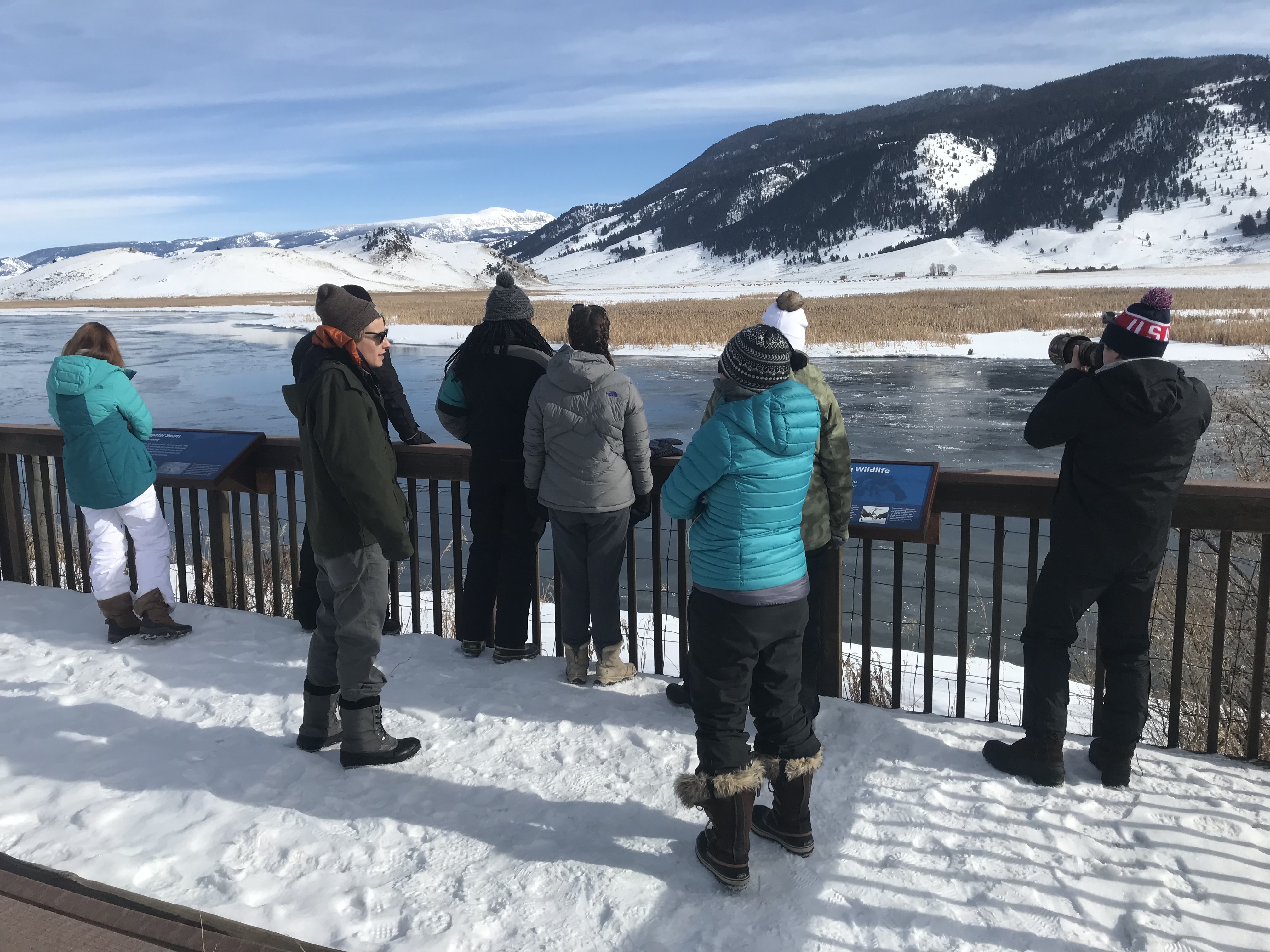 This morning we were greeted by the magnificent Teton range out in all its glory. Sunny day provided clear views and a gorgeous sunrise and sunset. In the morning, we went to the National Wildlife Art Museum and explored the question, “How does art inspired by wilderness contribute to conservation?” It was powerful to see how students identified ethics expressed in works of art. After the museum, we drove to Miller Butte in hopes of seeing big horn sheep. We were not disappointed! Following the exciting finds, we took a sleigh ride at the National Elk Refuge, learning in depth about the controversial topic of feeding the elk. We wrapped up the evening with a fiery (yet very respectful) debate that highlighted each of the stakeholders who are part of this controversial management practice. We sought consensus and some groups found it. Be sure to ask what their thoughts are on feeding the elk and why!